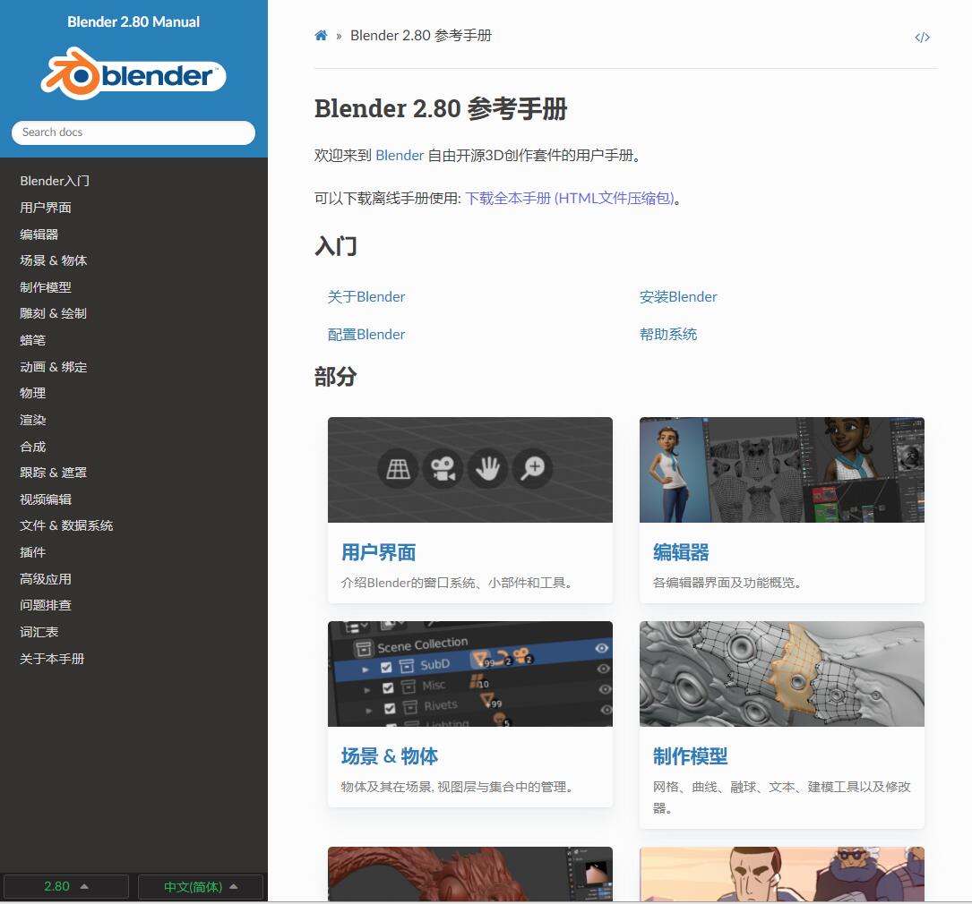 点击下方链接查看Blender2.80中文手册,也可以收藏起来,以便不时之需